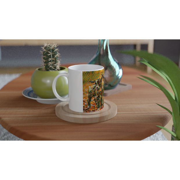 Product Info: This beautiful ceramic mug is perfect for any event of the day. Your morning coffee, a hot chocolate, or any other hot beverage you enjoy. The mug is glossy white and the print came out beautifully and vividly on it. The print retains its quality and luster when used in both microwaves and the dishwasher.