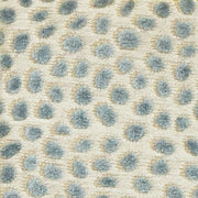 Een geweven stof in de kleuren bruin en crème vormt de perfecte achtergrond voor het prachtige staalblauwe chenille-luipaardpatroon.