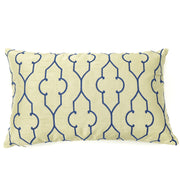 Knife Edge Lumbar Kussenhoes - 14x22 - Geborduurd Blauw op Greige
